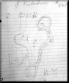 | --From a sketch such as this one, Adolph Bayers crafted fine bits for working cowboys. This order was placed by J. Richardson in 1971. This is an example of the original Bayers drawings that can be found in "Artistry in Silver and Steel," Volume IV. |