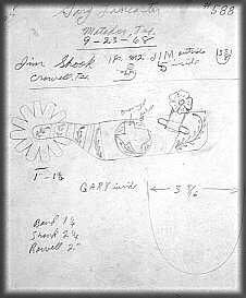 --This detailed drawing of spur number 598 was drawn by Mr. Bayers in 1968 when Gary Lancaster ordered his spurs. This drawing can be seen in Volume II of "Artistry in Silver and Steel." Go to the order page to find out how to get your copy of "Artistry in Silver and Steel ~ The Adolph Bayers Legend." |